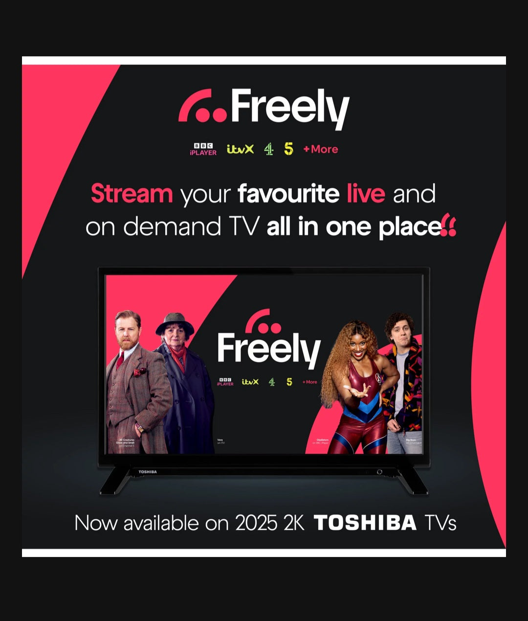 Freely - Just press the Freely button on your remote control and stream vour favourite live and on-demand TV All for free. No dish, no box, no need for an aerial. All you need is Wi-Fi.